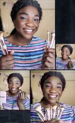 In english meams Touch Me Up. 10 piece Rose Gold Makup brush set. All the basic needs to create that everyday or full glam look you desire.